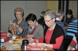 Am 7. Dezember 2015 waren dann die Bezirkshelferinnen zum gemütlichen Adventsnachmittag ins Pfarrheim Arnold-Janssen eingeladen. Neben dem Präses, Pater Yoseph Bugalit, war auch der neue Pastor Roberto Alda gerne gekommen, um sich den kfd-Frauen vorzustellen. Einführung des kfd-Teams in diesen Nachmittag war eine Besinnung zum Thema Adventskranz. Die grünen Zweige gelten als Zeichen des Lebens und der Hoffnung, die runde Form des Kranzes steht für die Unendlichkeit. Die Kerzen symbolisieren Licht, das hoffentlich auch durch uns nach und nach die Welt erhellt. Wunderschön dazu passend wurde das Lied „Tragt in die Welt nun ein Licht“ gesungen und anschließend von Pater Yoseph „Ein Licht in dir geborgen“ vorgetragen und mit Gitarre begleitet. Hungern und dürsten musste an diesem Nachmittag auch niemand. Für Weckmänner und Kaffee sowie Glühwein und Punsch war gesorgt. Tatkräftig und spontan half auch der neue Pastor beim Einschenken. Als Dankeschön für die vielfältige kfd-Arbeit im vergangenen Jahr erhielt jede Bezirkshelferin zum Abschluss noch ein nettes adventliches Geschenk vom kfd-Team. Es war ein sehr entspannter Nachmittag in der oft hektischen Adventszeit, wofür an dieser Stelle auch dem Team einmal herzlich DANKE gesagt sei.