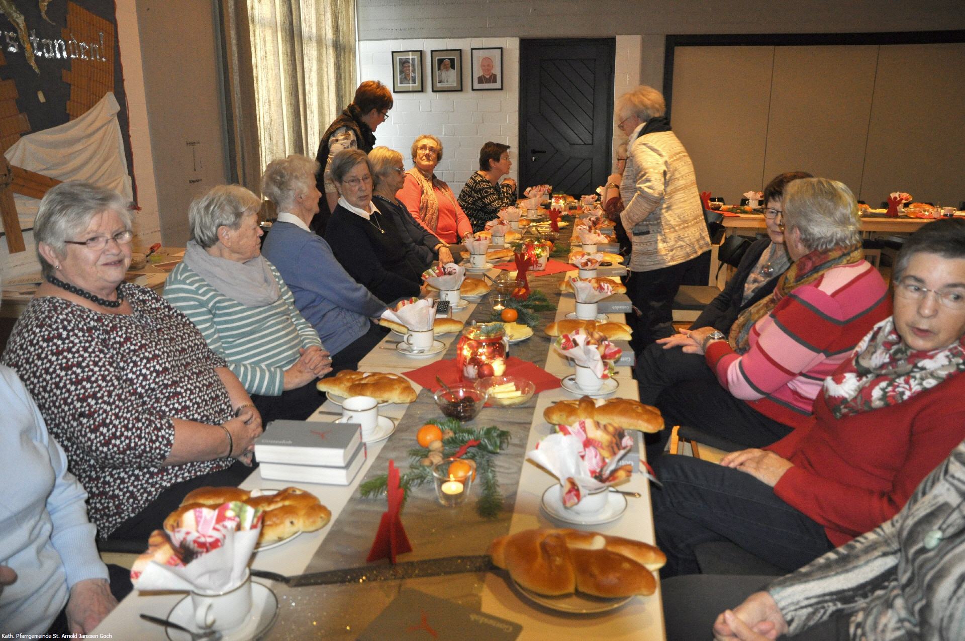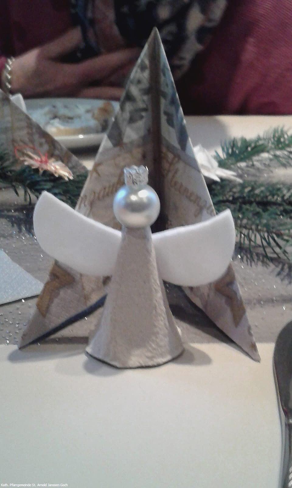 Wie immer waren alle Mitgliederinnen anschließend zum Frühstück eingeladen, das in diesem Monat aus einem leckeren Weckmannessen bestand. Zur Dekoration hatte das Team für jede Teilnehmerin einen hübschen Engel zum Mitnehmen gebastelt. Highlight dieses Morgens war die von Rudi Kempkes auf „Gochs Platt“ vorgetragene Weihnachtsgeschichte.