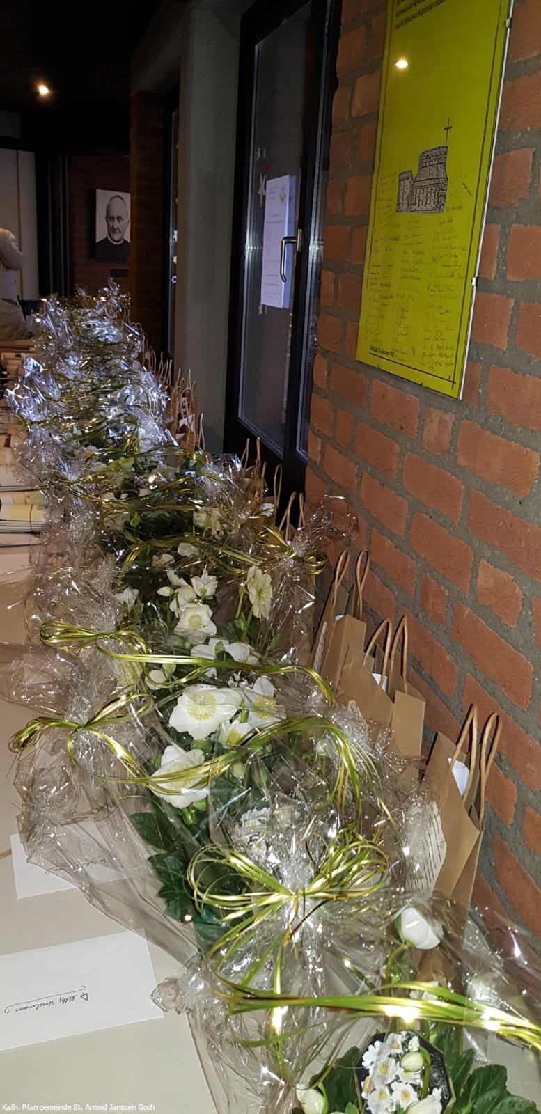 Die kfd Arnold-Janssen besteht seit nunmehr 45 Jahren. Grund genug, in einem feierlichen Gottesdienst mit 3 Geistlichen und dem Kirchenchor „Danke“ zu sagen und auch den Segen für die Zukunft zu erbitten. Der Gottesdienst stand unter dem Thema: „Auf dem Weg durch Raum und Zeit.“ Als Symbol für die Texte dieses Gottesdienstes wurde ein Rad gewählt, dessen Speichen sich vom äusseren Radkranz zur Nabe in der Mitte verbinden. Ein schönes Bild auch für die kfd-Gemeinschaft - sich auf Gott als Mitte christlichen Lebens zu besinnen, aus dem Menschen immer wieder Kraft schöpfen können.