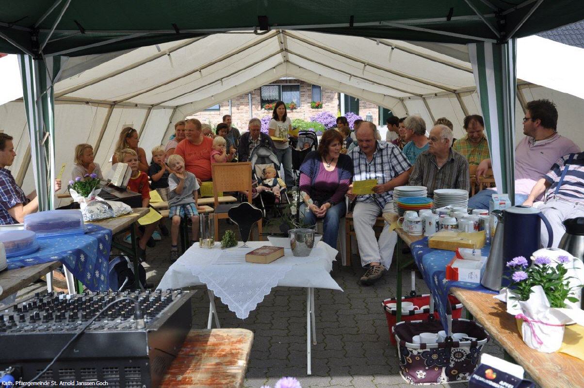 Bei herrlichem Sonnenschein fiel es leicht, ein Loblied auf Gottes schöne Schöpfung zu singen. Im Pfarrgarten an der Arnold-Janssen-Kirche in Goch stimmten ungefähr 70 Erwachsene und Kinder mit ihren Haustieren ein in den Lobpreis auf all das, was Gott uns geschenkt hat. Der Familienausschuss der Arnold-Janssen-Gemeinde hatte zu einem Wortgottesdienst mit Diakon Werner Kühle eingeladen. Musikalisch begleitet wurde der Gottesdienst mit fröhlichen Liedern von Wolfgang Nowak.
